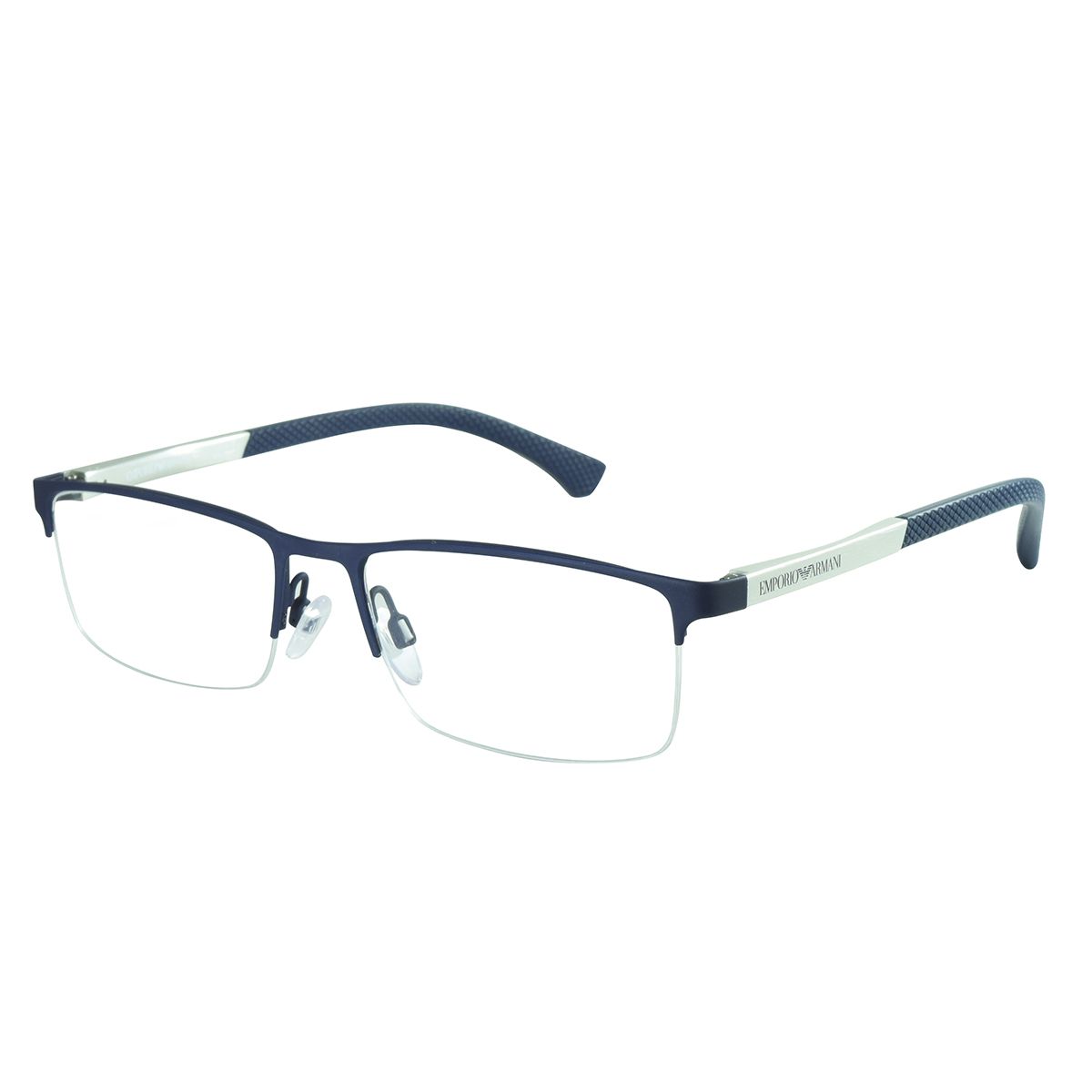 EMPORIO ARMANI. ARMAÇÃO METAL, EA1041 3131 55X17 140, NA COR AZUL FOSCO COM HASTES CINZA ALUMINIUM, NO TAMANHO 55, MODELO FLUTUANTE MASCULINO