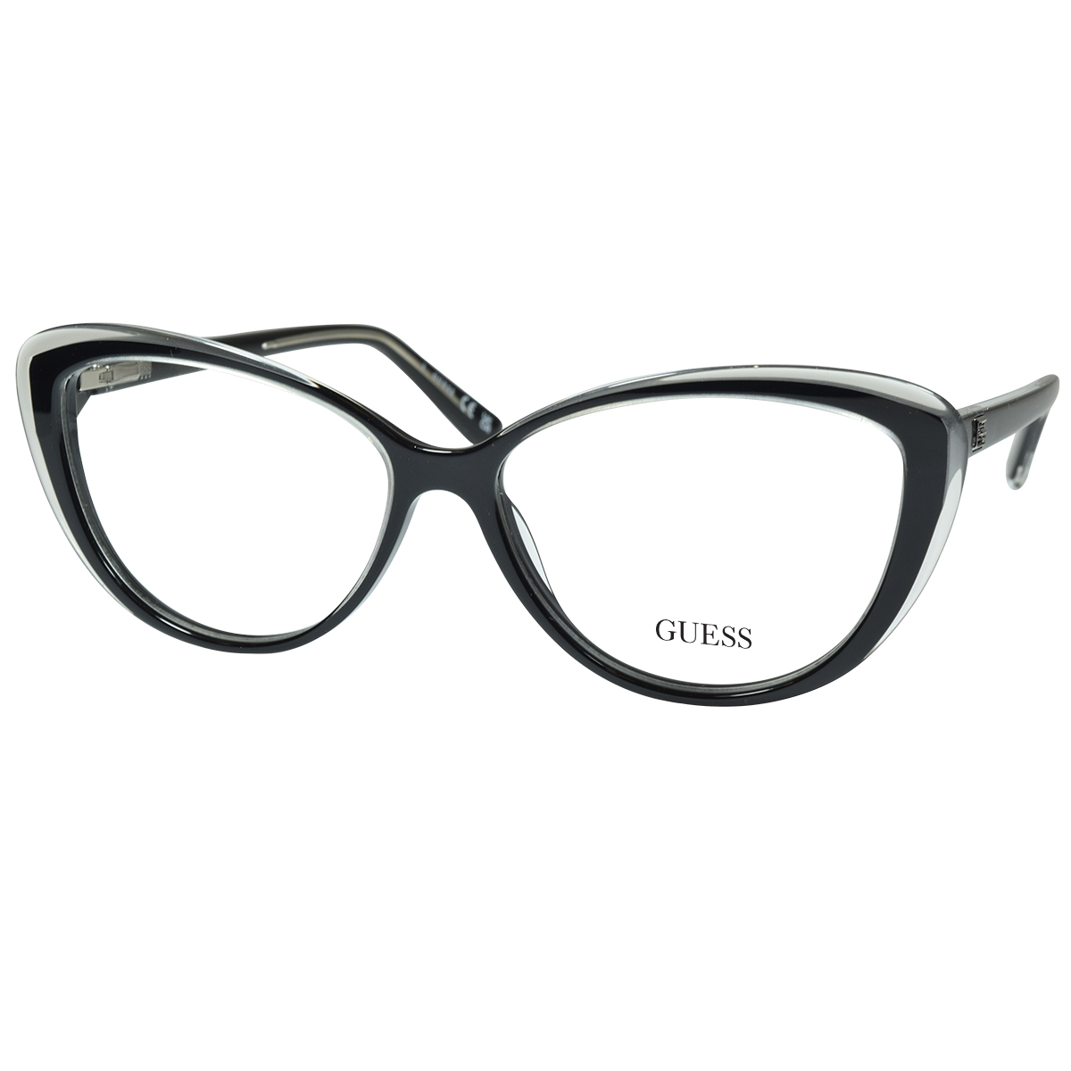 GUESS, ARMAÇÃO ACETATO, GU2978 005 55X14 140, NA COR PRETO BRILHO COM DETALHES TRANSPARENTE, NO TAMANHO 55, MODELO FEMININO