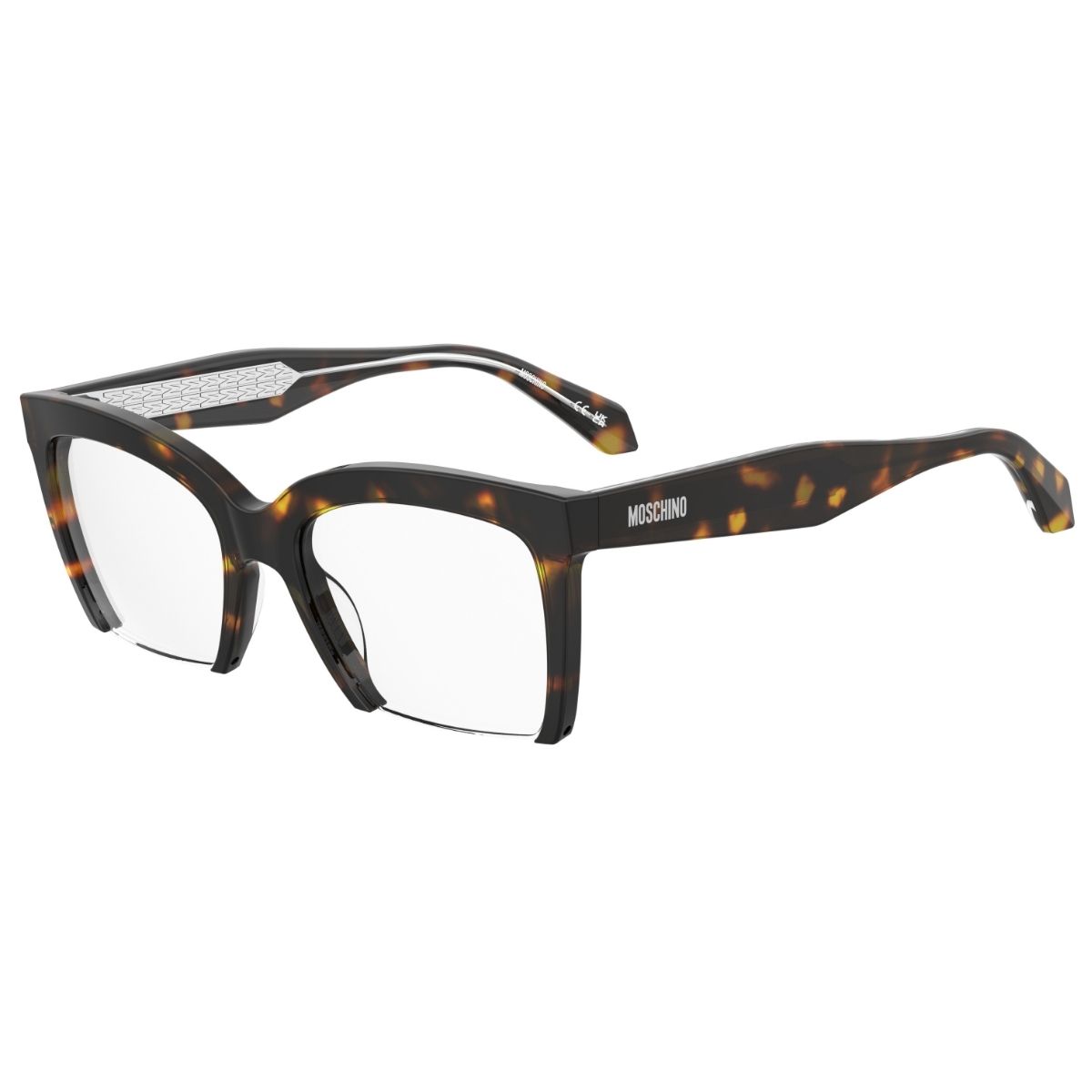 MOSCHINO, ARMAÇÃO ACETATO, MOS654 086 52X19 140, NA COR MARROM CRAQUELADO, NO TAMANHO 54, MODELO FLUTUANTE FEMININO