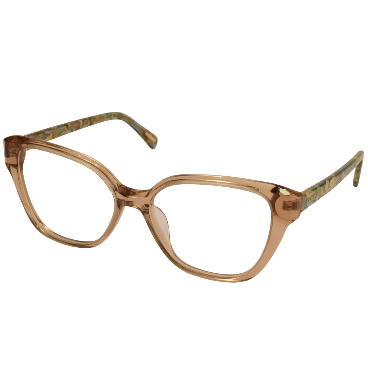 VICTOR HUGO, ARMAÇÃO ACETATO, VH1942 07AY 53X15 140, NA COR MARROM TRANSLÚCIDO COM DETALHES AZUL CRAQUELADO, NO TAMANHO 53, MODELO FEMININO