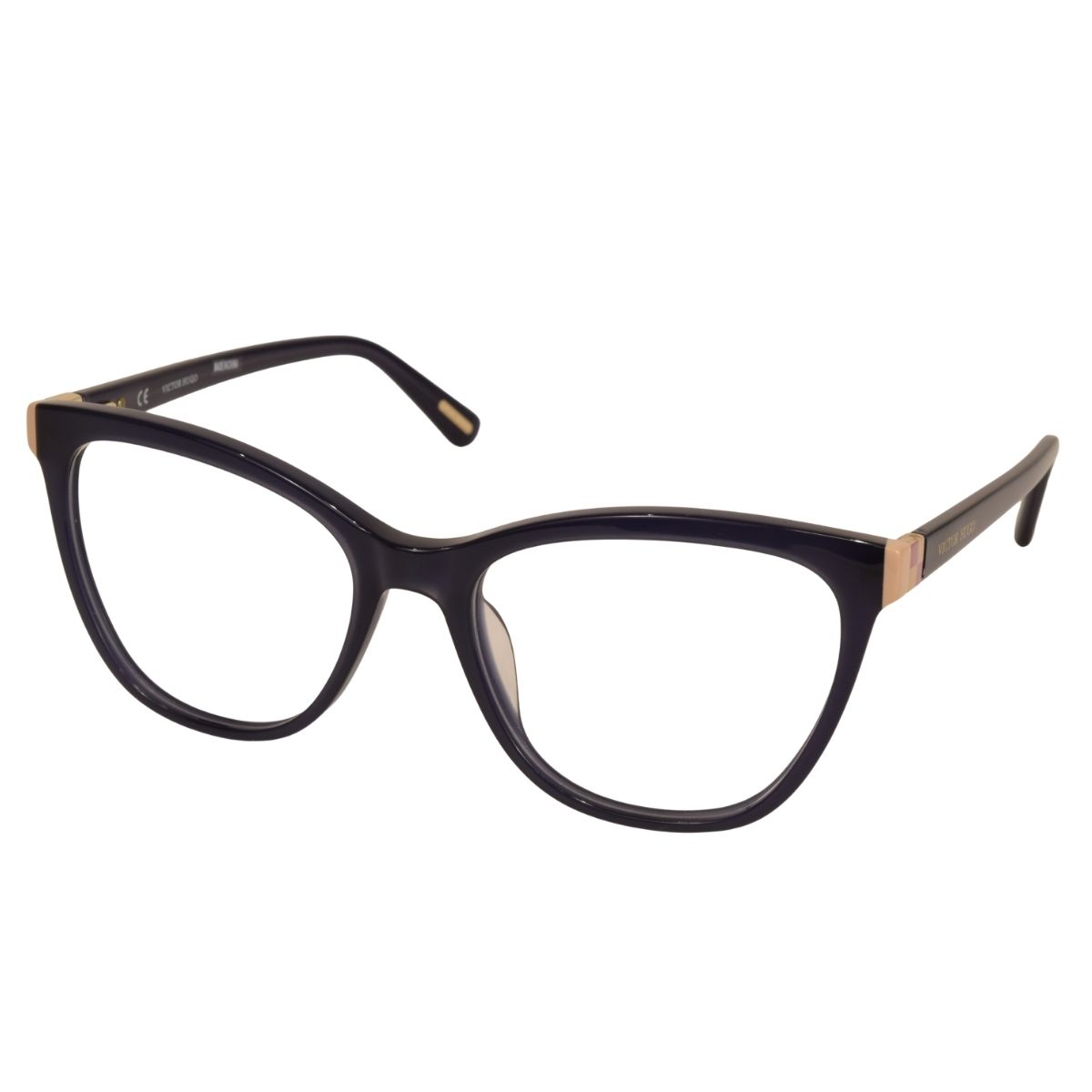 VICTOR HUGO, ARMAÇÃO ACETATO, VH1945 0956 53X17 140, NA COR AZUL ESCURO COM DETALHES NUDE, NO TAMANHO 53, MODELO FEMININO