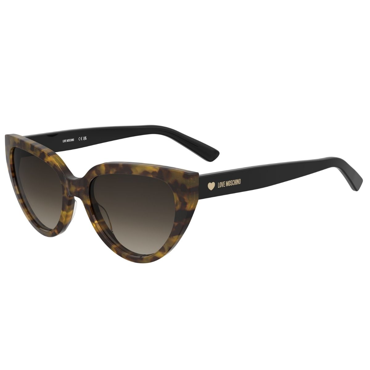 LOVE MOSCHINO, ARMAÇÃO ACETATO, MOL095/S 086 HA 55X18 140, NA COR MARROM HAVANA COM DETALHES PRETO BRILHO, NO TAMANHO 55, COM LENTES MARROM DEGRADÊ, MODELO SOLAR FEMININO