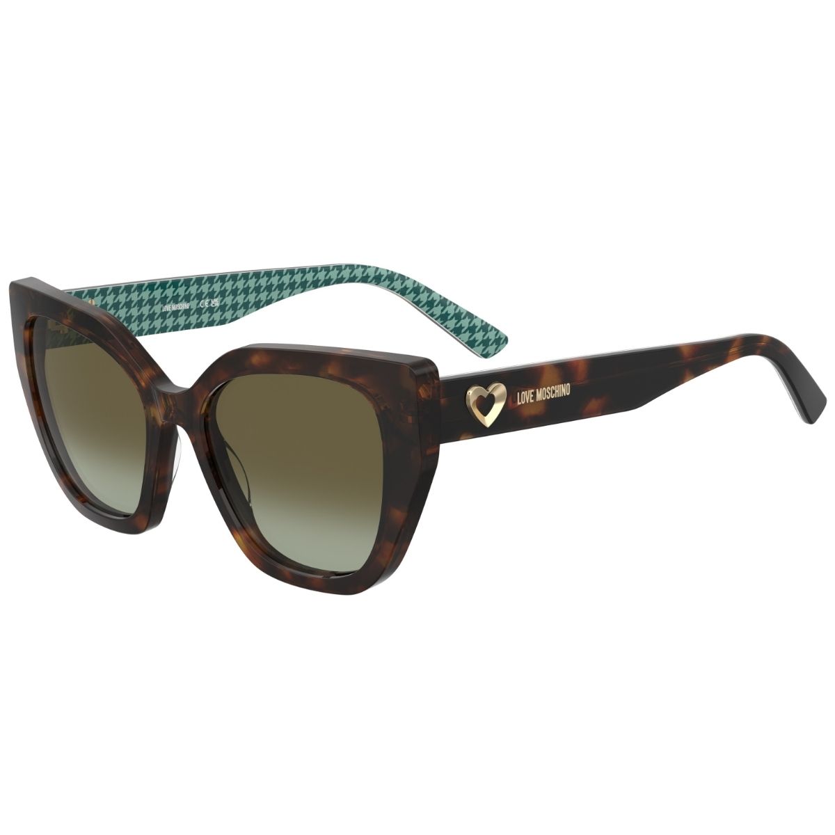 LOVE MOSCHINO, ARMAÇÃO ACETATO, MOL098/S 2VM BC 54X18 140, NA COR MARROM HAVANA COM DETALHES VERDE, NO TAMANHO 54, COM LENTES MARROM DEGRADÊ, MODELO SOLAR FEMININO