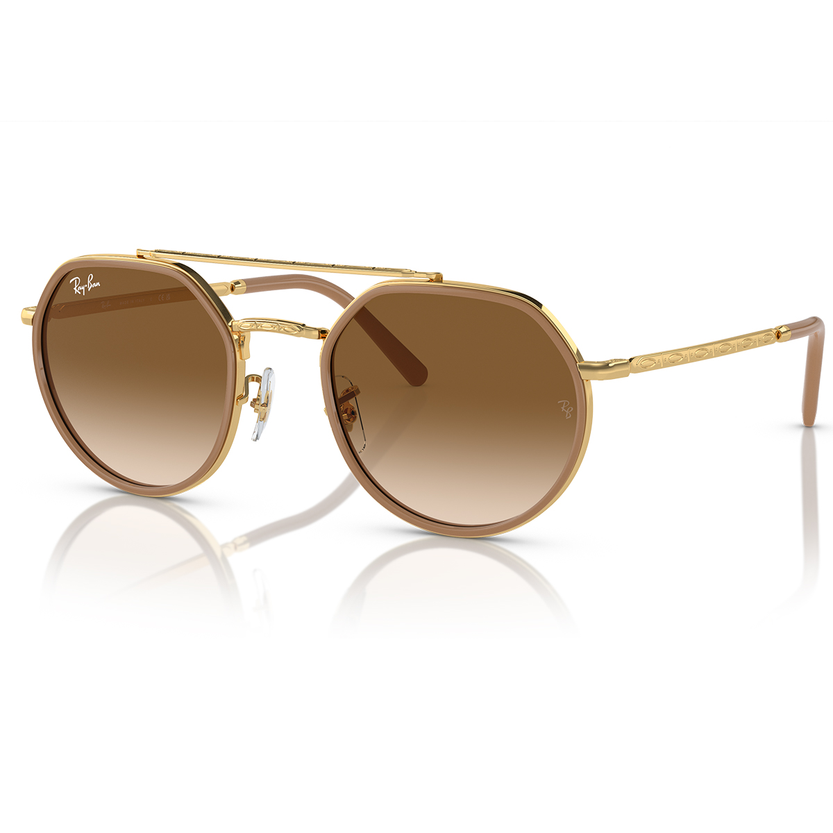 RAY-BAN, ARMAÇÃO METAL, RB3765 001/51 53, NA COR DOURADO COM DETALHES NUDE, NO TAMANHO 53, LENTES CRISTAL MARROM DEGRADÊ, MODELO FEMININO